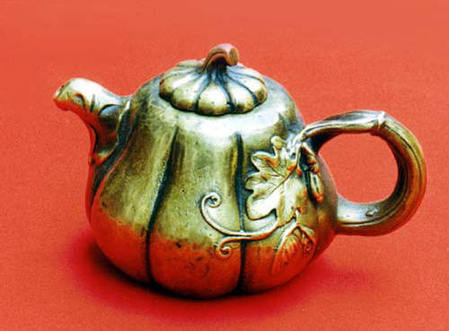 銅茶壺金屬用具是指由金、銀、銅、鐵、錫等金屬材料制作而成的器具。它是我國最古老的日用器具之一,早在公元前18世紀(jì)至公元前221年秦始皇統(tǒng)一中國之前的1500年間,青銅器就得到了廣泛的應(yīng)用,先人用青銅制作盤盛水,制作爵、尊盛酒,這些青銅器皿自然也可用來盛茶。自秦漢至六朝,茶葉作為飲料已漸成風(fēng)尚,茶具也逐漸從與其他飲具共用中分離出來。大約到南北朝時,我國出現(xiàn)了包括飲茶器皿在內(nèi)的金銀器具。到隋唐時,金銀器具的制作達(dá)到高峰。本世紀(jì)80年代中期,陜西扶風(fēng)法門寺出土的一套由唐僖宗供奉的鎏金茶具,可謂是金屬茶具中罕見的稀世珍寶。但從宋代開始,古人對金屬茶具褒貶不一。貯茶錫罐元代以后,特別是從明代開始,隨著茶類的創(chuàng)新,飲茶方法的改變,以及陶瓷茶具的興起,才使包括銀質(zhì)器具在內(nèi)的金屬茶具逐漸消失,尤其是用錫、鐵、鉛等金屬制作的茶具,用它們來煮水泡茶,被認(rèn)為會使;茶味走樣以致很少有人使用。但用金屬制成貯茶器具,如錫瓶、錫罐等,卻屢見不鮮。這是因為金屬貯茶器具的密閉性要比紙、竹、木、瓷、陶等好,具有較好的防潮、避光性能,這樣更有利于散茶的保藏。因此,用錫制作的貯茶器具,至今仍流行于世。