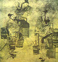 我國以茶為題材的古代繪畫,現(xiàn)存或有文獻(xiàn)記載的多為唐代以后的作品。如唐代的《調(diào)琴啜茗圖卷》;南宋劉松年的《斗茶圖卷》;元代趙孟俯的《斗茶圖》;明代唐寅的《事茗圖》,文征明的《惠山茶會(huì)圖》、《烹茶圖》,丁云鵬的《玉川煮茶圖》;等等。