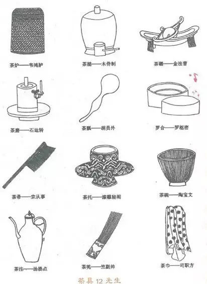 《茶具圖贊》是我國(guó)第一部以圖譜形式寫茶具的專著。審安老人用白描畫法繪制出了宋代著名斗茶所用的茶具12件,稱為“十二先生”。