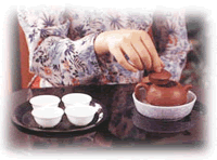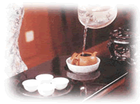 1、噓寒問暖(濕壺):俗稱“濕壺”,將初沸水注入空壺,以提高壺溫,便于沖泡。