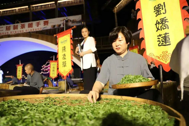 炒青、揉捻,翻炒、抖散……鮮嫩的茶葉魔術(shù)般地變緊變細(xì),7月20日,在浦源鎮(zhèn)鯉魚溪荷花池畔由周寧縣總工會、茶業(yè)局、文旅局、茶業(yè)協(xié)會聯(lián)合舉辦的“周寧縣第二屆制茶能手賽”精彩上演,現(xiàn)場茶香四溢,引來群眾、游客紛紛駐足觀看。